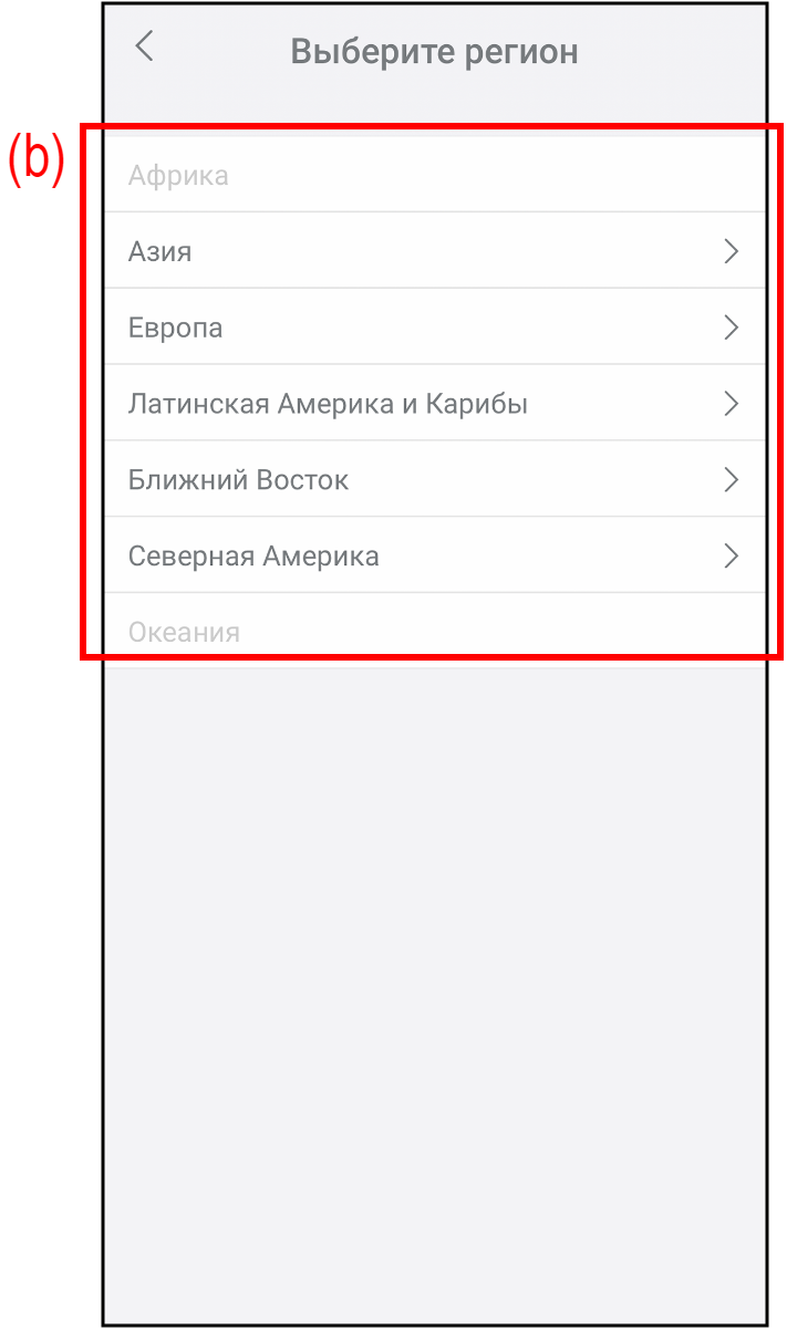 Экран перейдет к разделу «Выбрать страну/регион», и появится список стран/регионов выбранного региона.