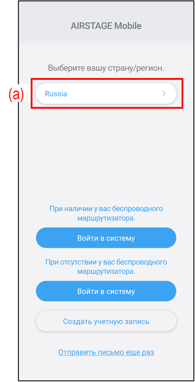 - Если у вас нет учетной записи AIRSTAGE Mobile, создайте новую учетную запись, следуя инструкциям из раздела «Создание учетной записи».