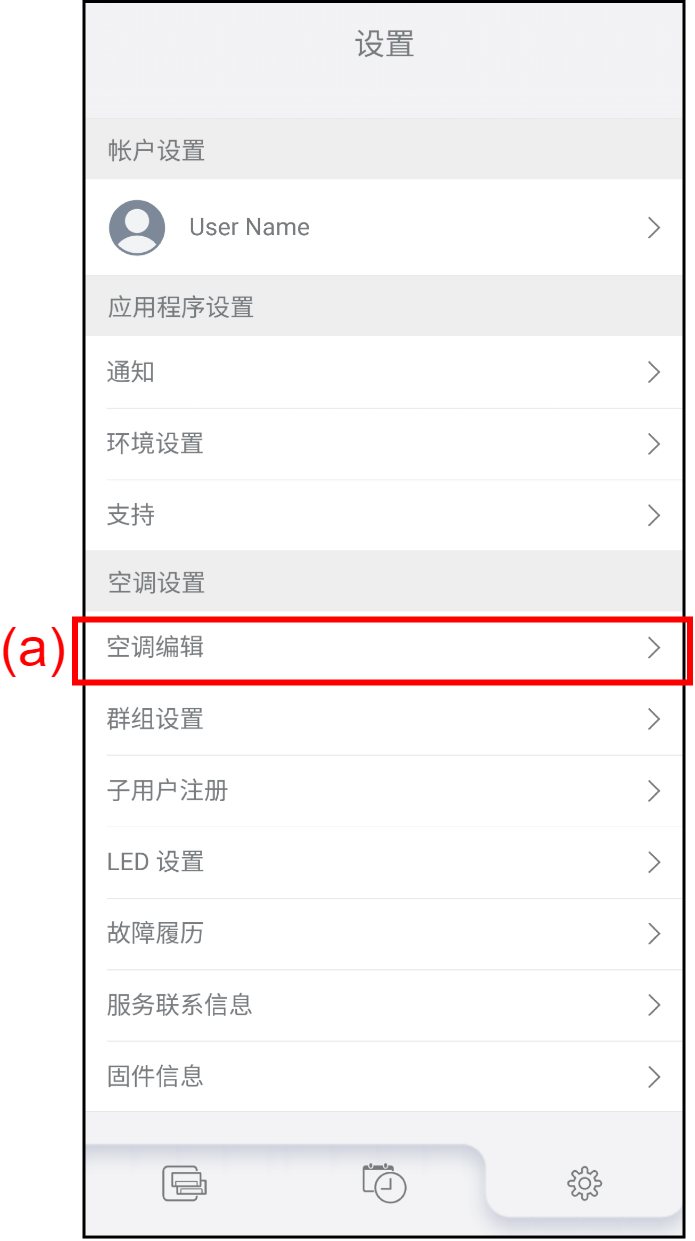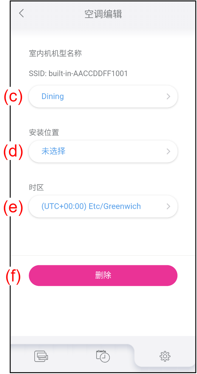 (c) 室内机机型名称 轻按以编辑室内机的名称。