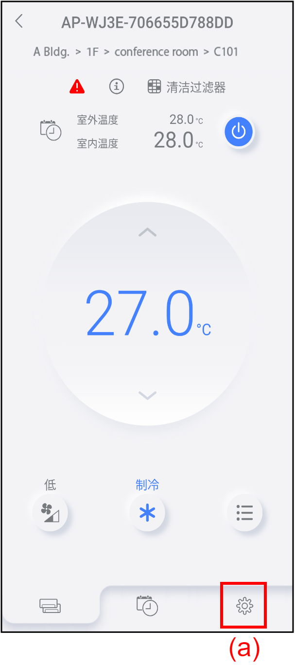 主页 设置 可以从设置选项卡[ ]检查并更改本应用程序或空调的各种设置。 轻按(a)转至“设置”画面。 可以从“设置”画面中检查或设置以下项目。 帐户设置 应用程序设置 通知 环境设置 支持 空调设置 空调编辑 群组设置 子用户注册 LED 设置 故障履历 服务联系信息 固件信息 注: 某些设置可能不会显示,这取决于空调。 多部智能手机同时共享一个帐户时请勿更改设置。这可能会导致设置失败。