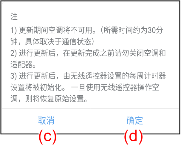 若要在未激活自动固件更新的情况下关闭窗口,轻按(c)。