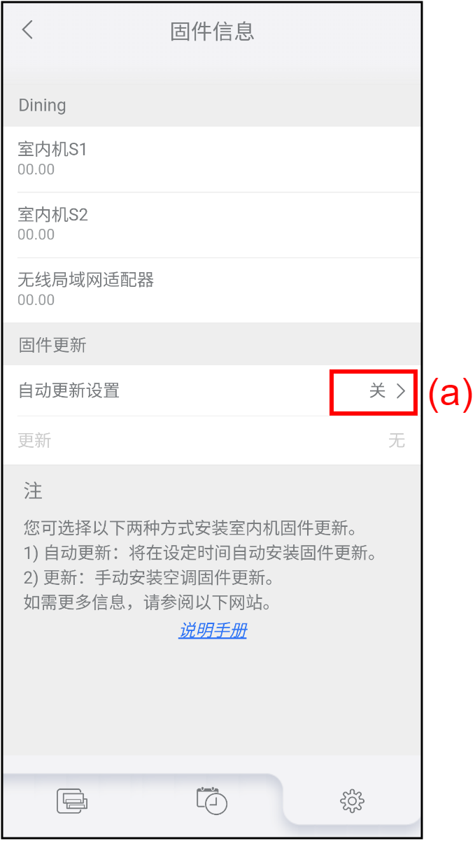 可以设置空调和无线局域网适配器开始自动固件更新的时间。