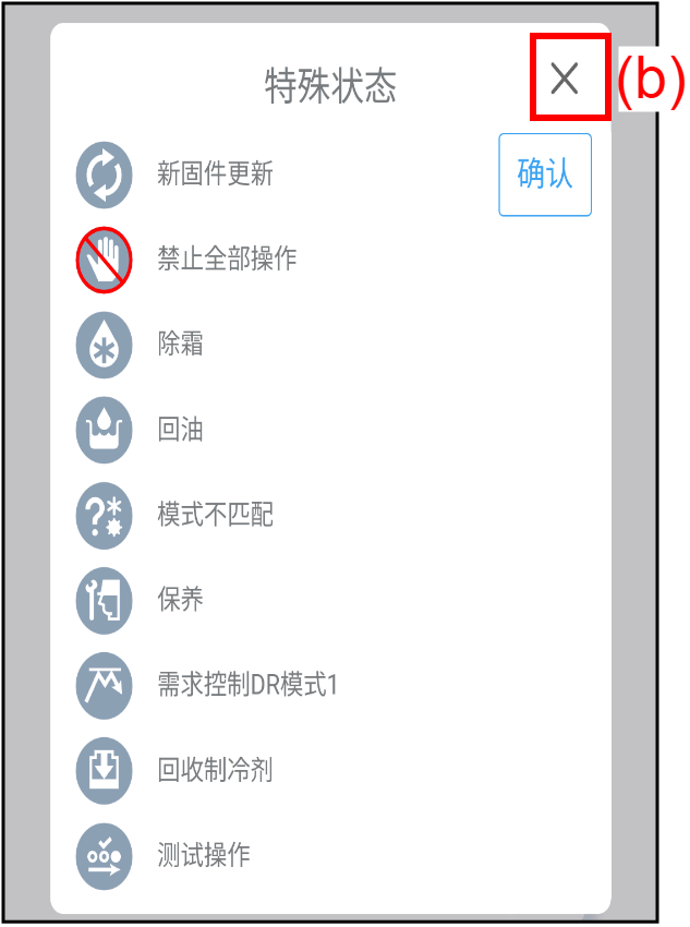 禁止 | 中央控制器禁止通过本应用程序进行操作。 |