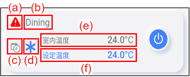 | (e) | 室内温度 | 显示当前室内温度。 |