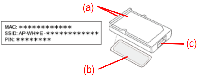 (b) Nalepka z informacijami o adapterju (pritrjena na adapter WLAN s trakom)