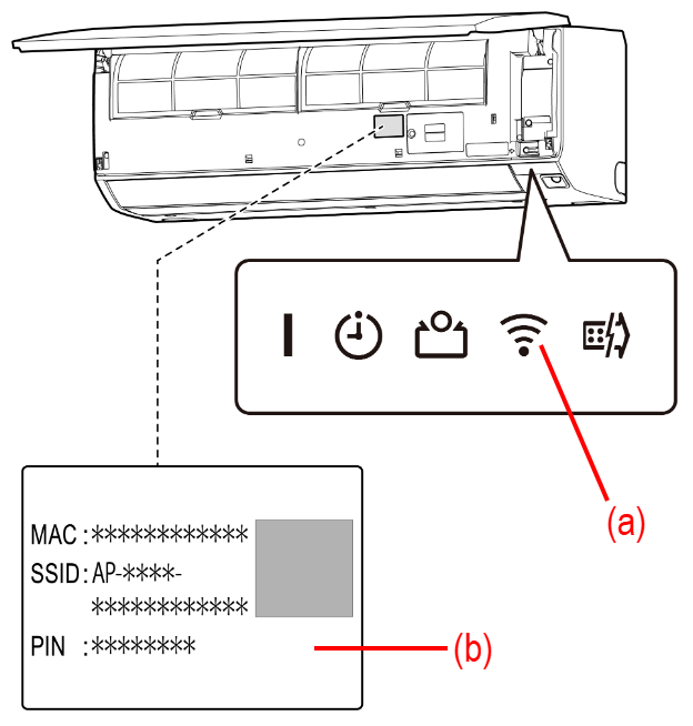 - Adapter WLAN bo preklopil v način pripravljenosti, če nastavitve brezžičnega LAN ne zaključite v roku ene ure po tem, ko napajalnik povežete s klimatsko napravo (prek odklopnika ali vtiča).
