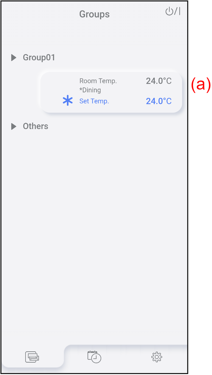* V načinu Fan in Minimum Heat ni na voljo.(d) Način delovanja Dotaknite se tukaj, da izberete način delovanja. - Dotaknite se (e), da zaprete okno.