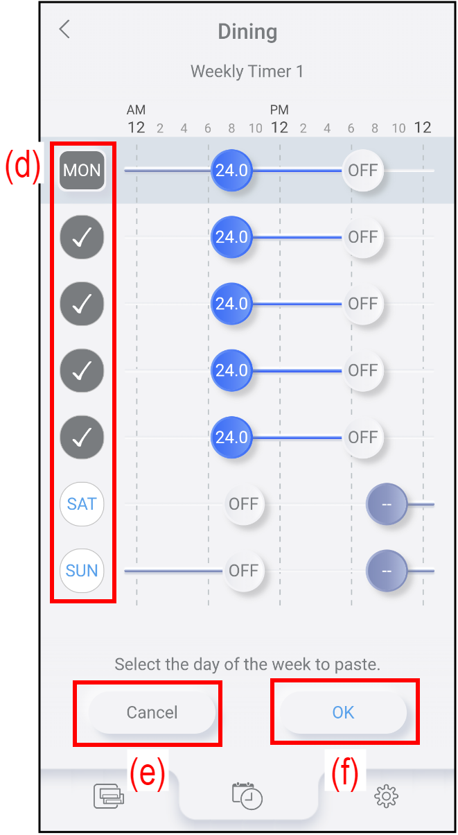 - Izberite dan v tednu (d), na katerega želite kopirati.
