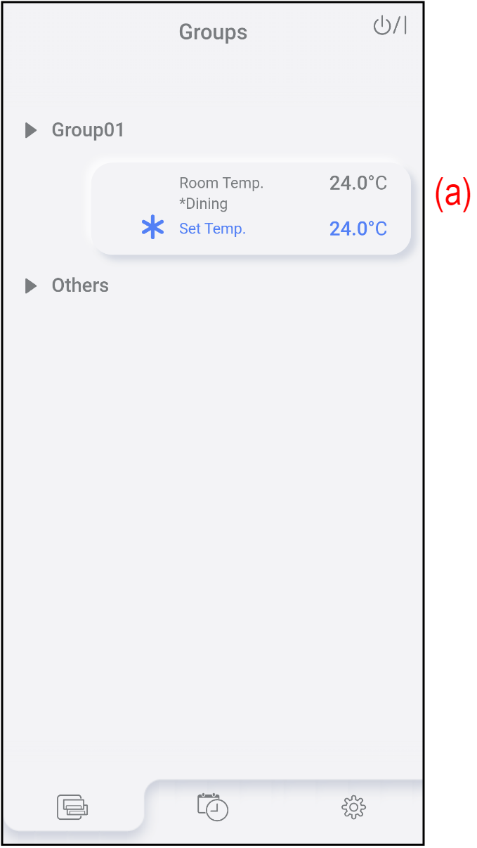 * V načinu Fan in Minimum Heat ni na voljo.(d) Način delovanja Dotaknite se tukaj, da izberete način delovanja. - Dotaknite se (e), da zaprete okno.
