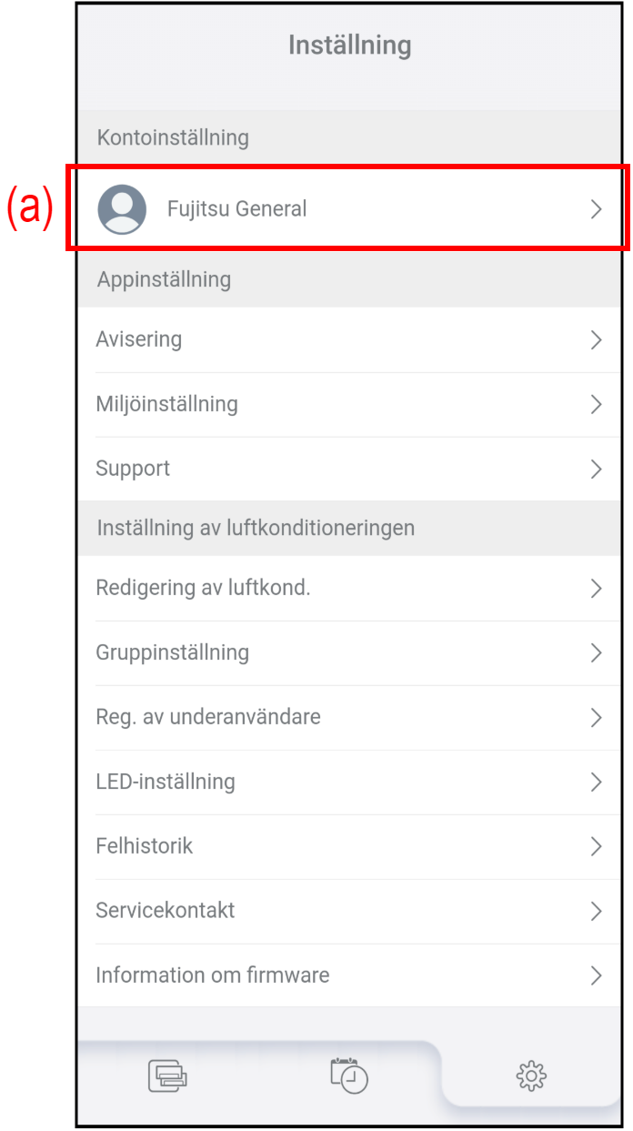 Tryck på (a) på skärmen ”Inställning” för att ändra din kontoinformation och ditt lösenord.