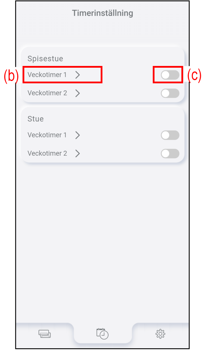 Tryck på (c) för att aktivera eller inaktivera veckotimern.