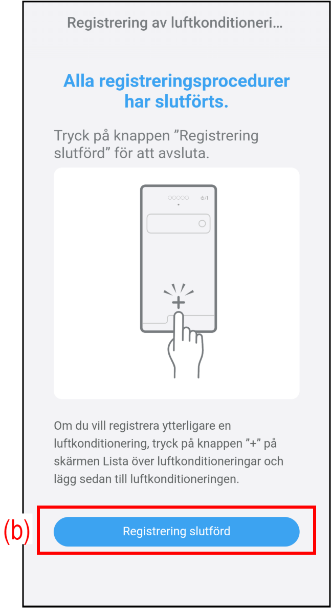 - Tryck på (a) för att registrera en ny luftkonditioneringsapparat i appen.