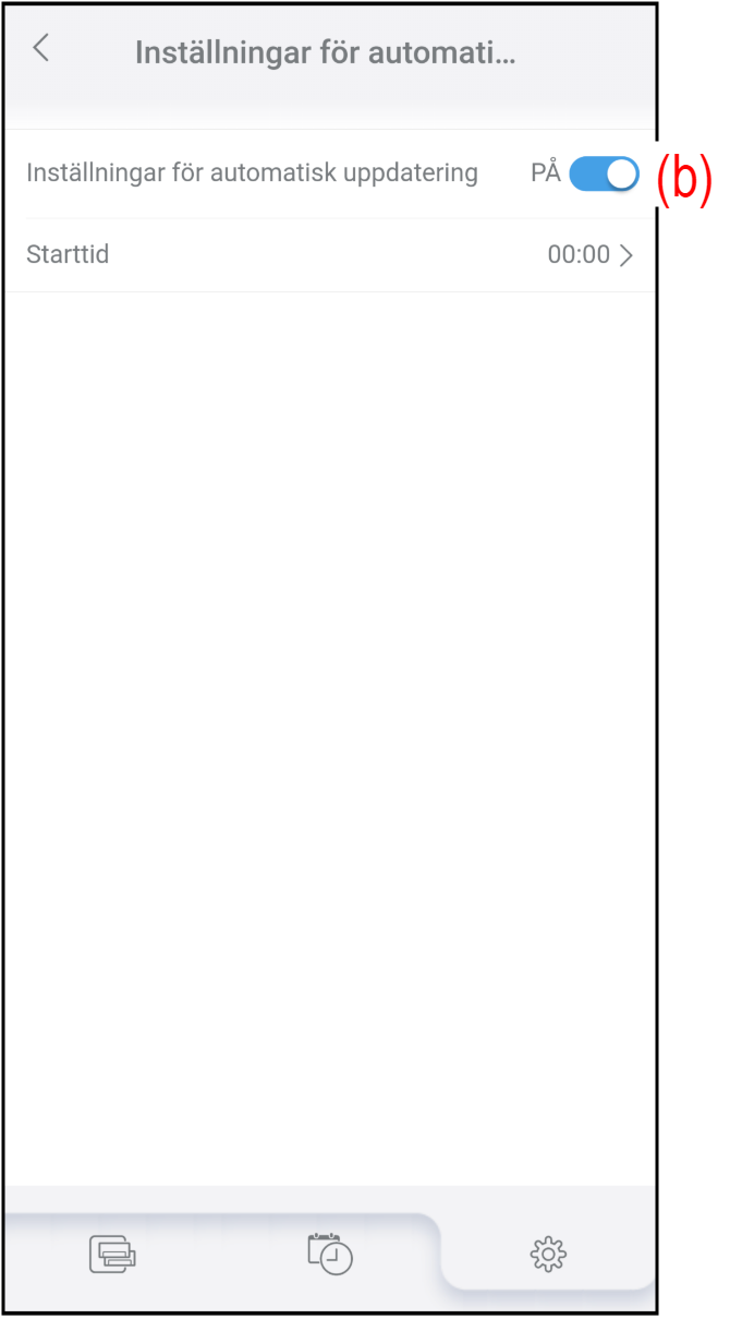 Tryck på (b) för att aktivera/avaktivera den automatiska uppdateringen.