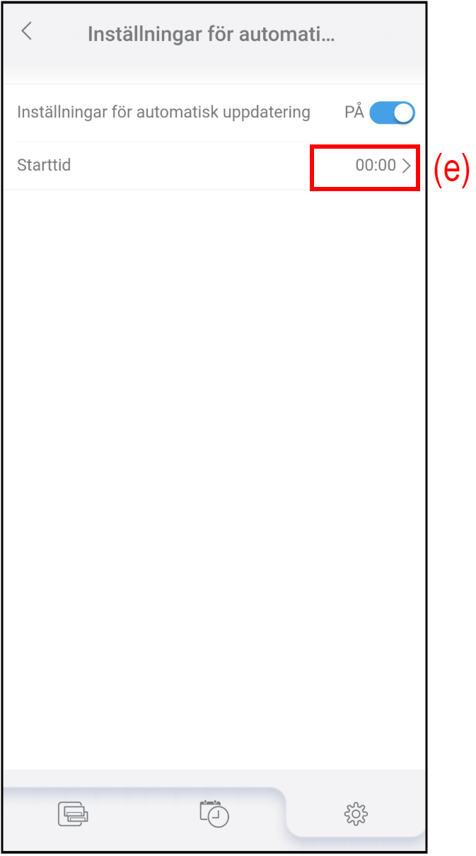 - Tryck på (e) för att ställa in starttiden för den automatiska uppdateringen av fast programvara.