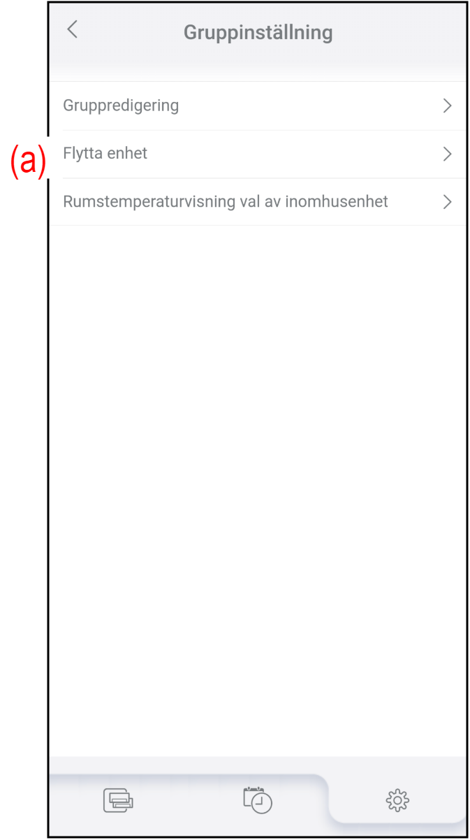 - Tryck på (a) på skärmen ”Group Setting” för att flytta luftkonditioneringsapparaten till en annan grupp.