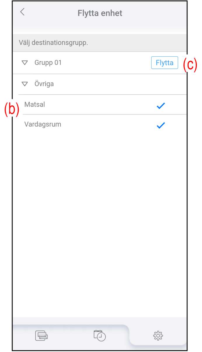 ] anger den valda luftkonditioneringsapparaten. - Tryck på knappen (c) för den grupp som du vill flytta till.