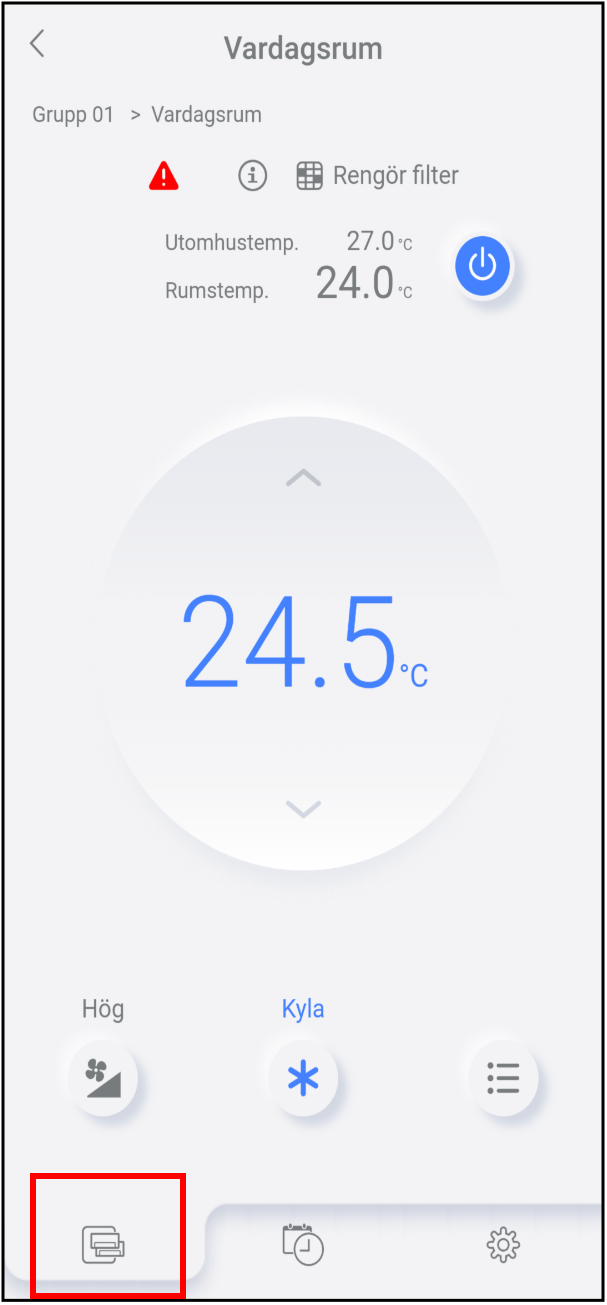 Du kan använda luftkonditioneringsapparaternas grundläggande funktioner från luftkonditioneringsapparatens flik ( [