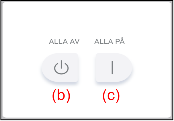 | (b) | På-/Av-knapp för alla | Tryck här för att starta/stoppa driften av alla luftkonditioneringsapparater. |