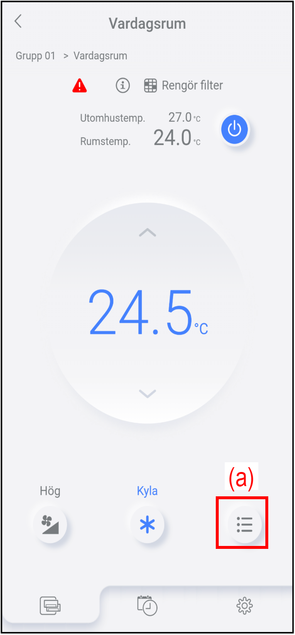 Du kan ändra driftinställningarna och använda en mängd olika funktioner på skärmen för individuell luftkonditioneringsapparat.