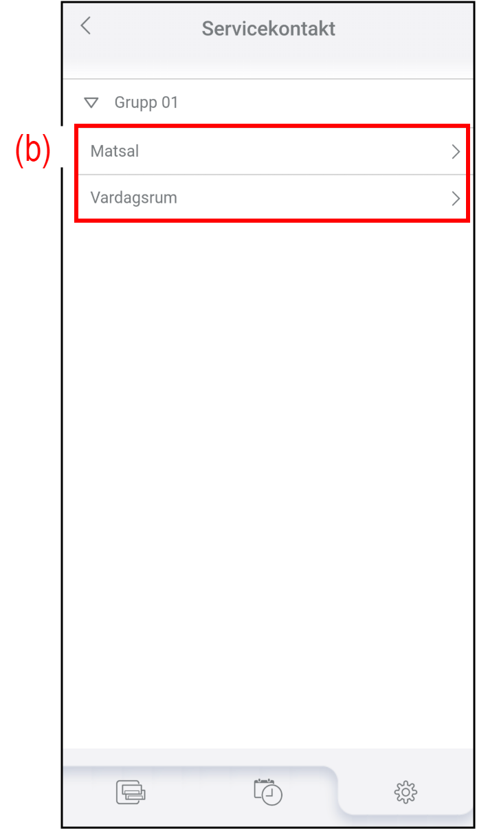 - Tryck på (b) för att välja den luftkonditioneringsapparat för vilken servicekontakten ska kontrolleras eller redigeras.