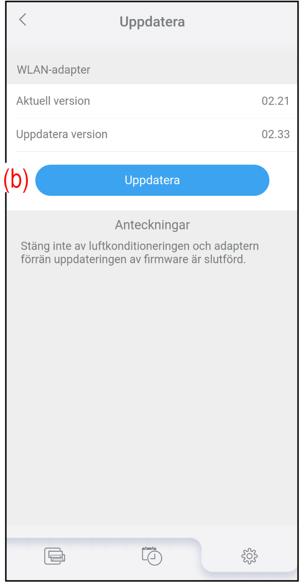 - Tryck på (b) för att starta uppdateringen av fast programvara.