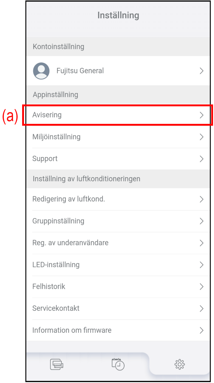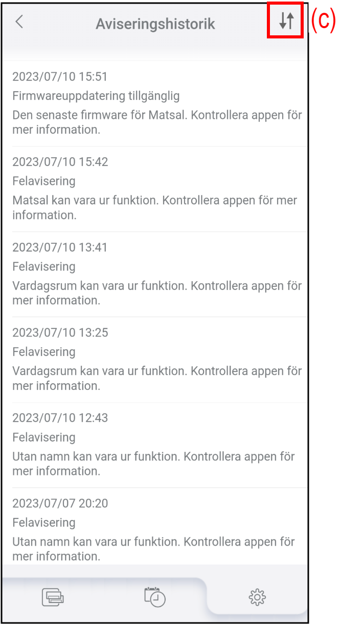 Tryck (a) på skärmen ”Inställning” för att kontrollera tidigare meddelanden.