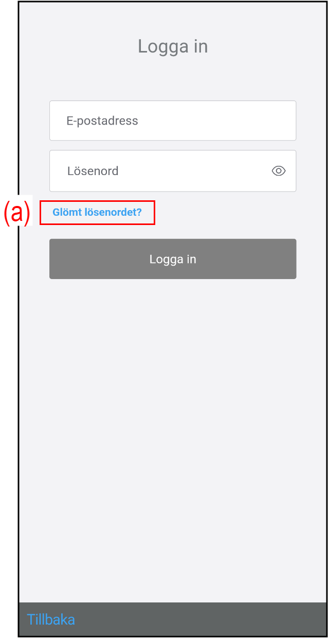 - Tryck på (a) på skärmen ”Logga in” om du har glömt ditt lösenord.