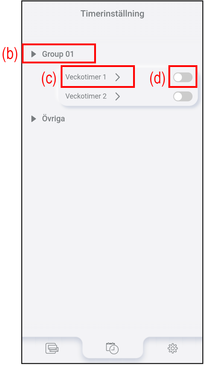 Om gruppen är vald växlar skärmen till ”Grupptimerinställning”.