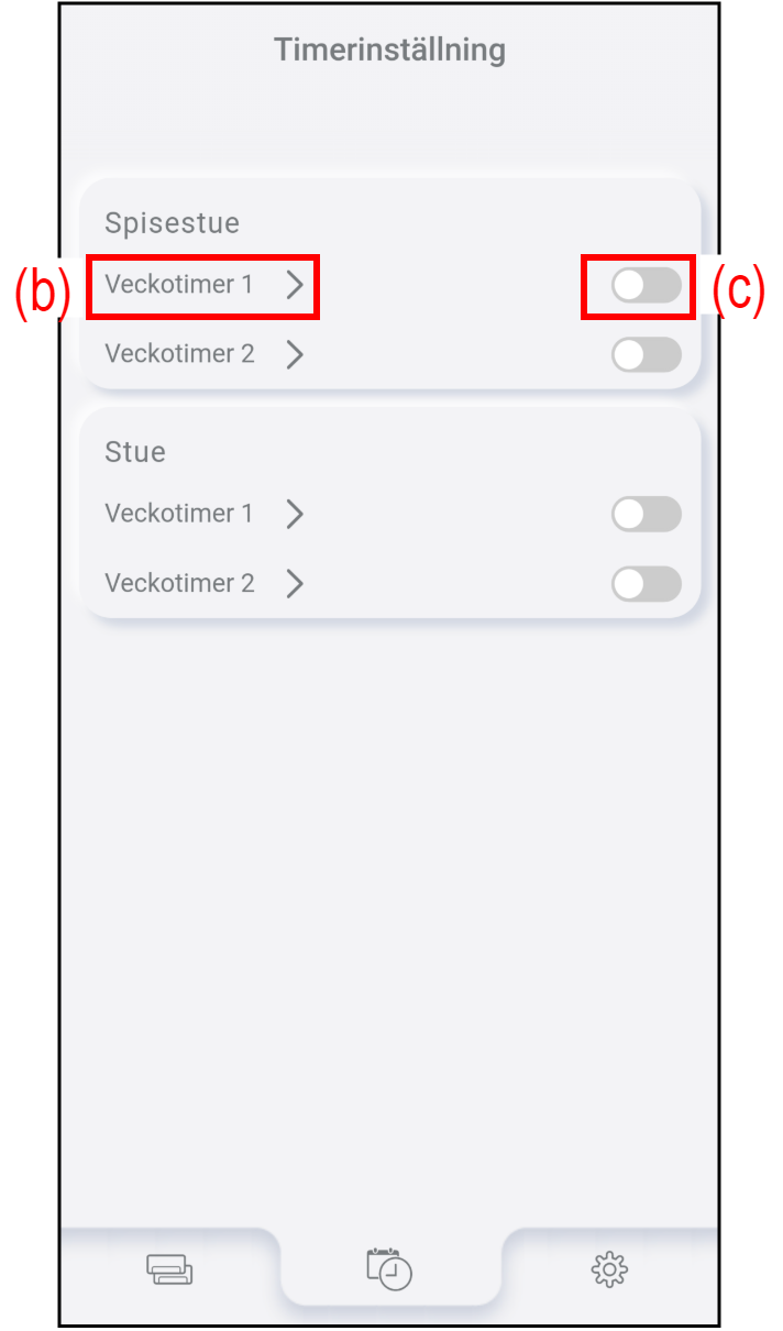 Du kan ställa in och kontrollera veckotimerinställningarna från fliken Timer [