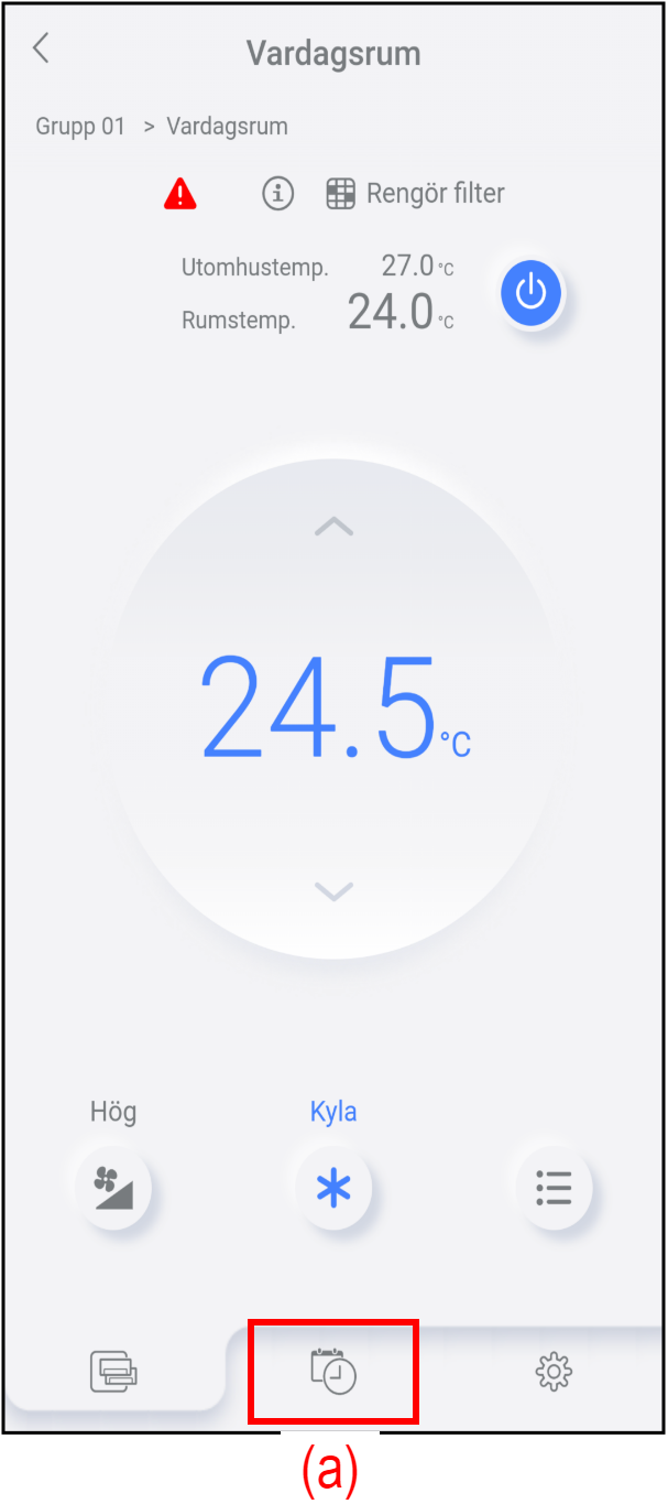 Tryck på (b) för att visa luftkonditioneringsapparaterna som är registrerade i gruppen.