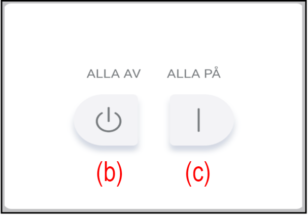 | (b) | På-/Av-knapp för alla | Tryck här för att starta/stoppa driften av alla luftkonditioneringsapparater. |