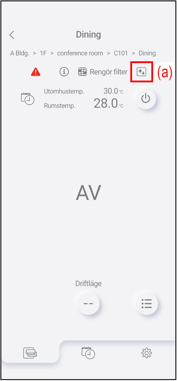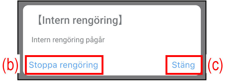 Tryck på symbolen (a) för att visa fönstret ”Invändig rengöring”.