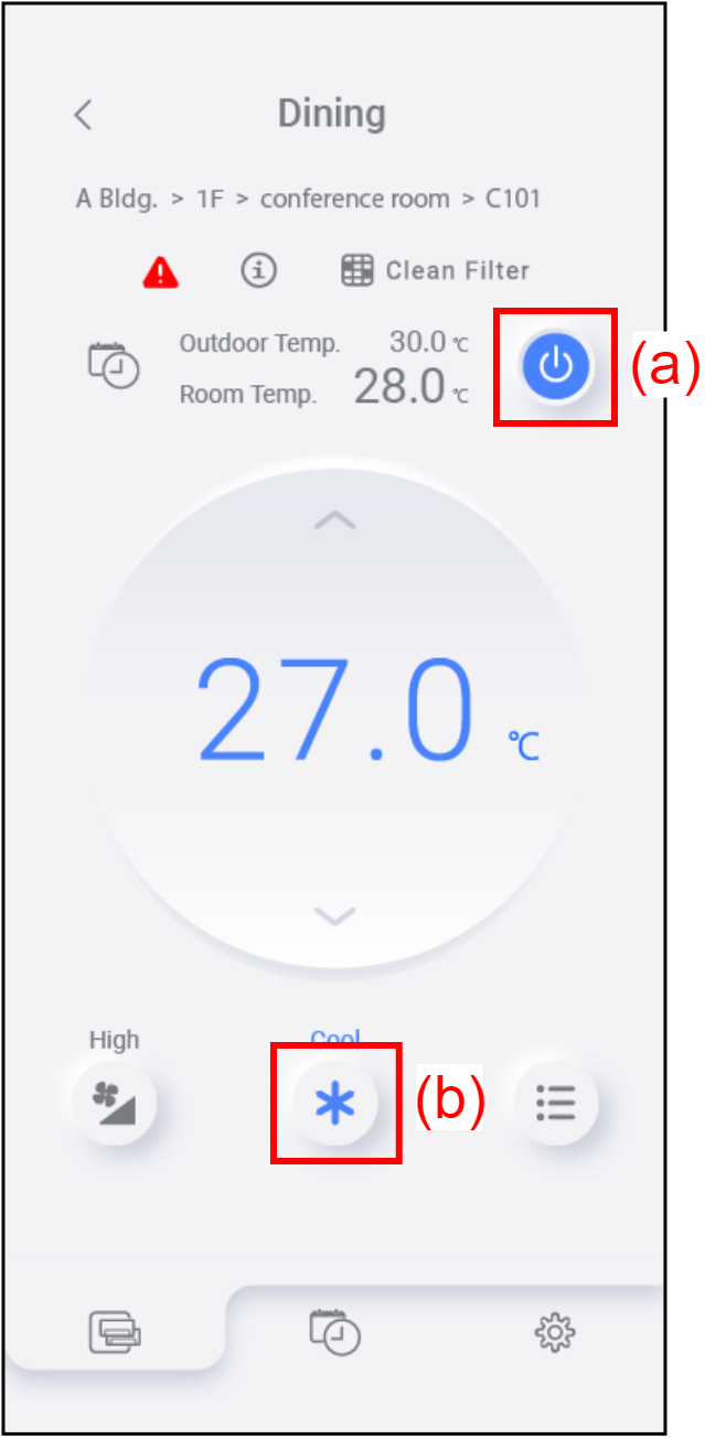 *1: หาก “OFFLINE” ปรากฏขึ้น แสดงว่าแอพนี้ไม่พบเครื่องปรับอากาศที่ลงทะเบียนไว้