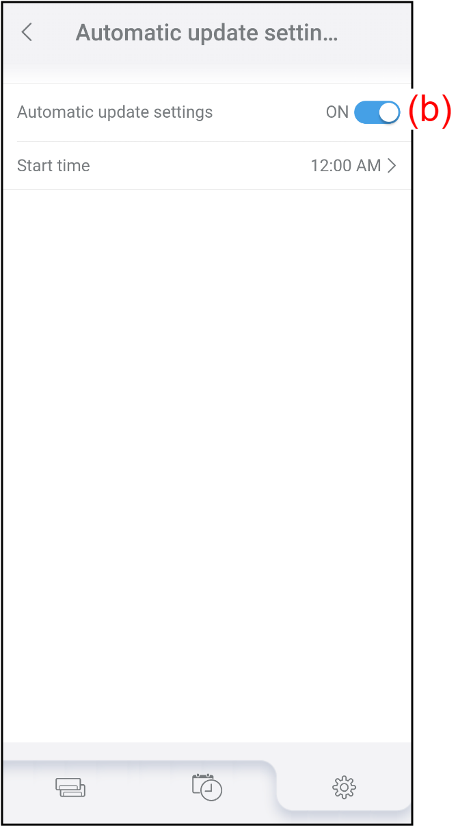 แตะ (b) เพื่อเปิดใช้งาน/ปิดใช้งานการอัพเดตอัตโนมัติ
