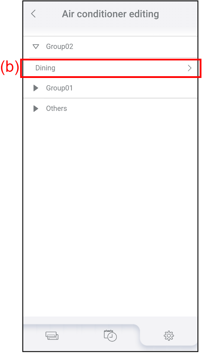 - แตะเครื่องปรับอากาศ (b) ที่คุณต้องการแก้ไขชื่อหรือลบ