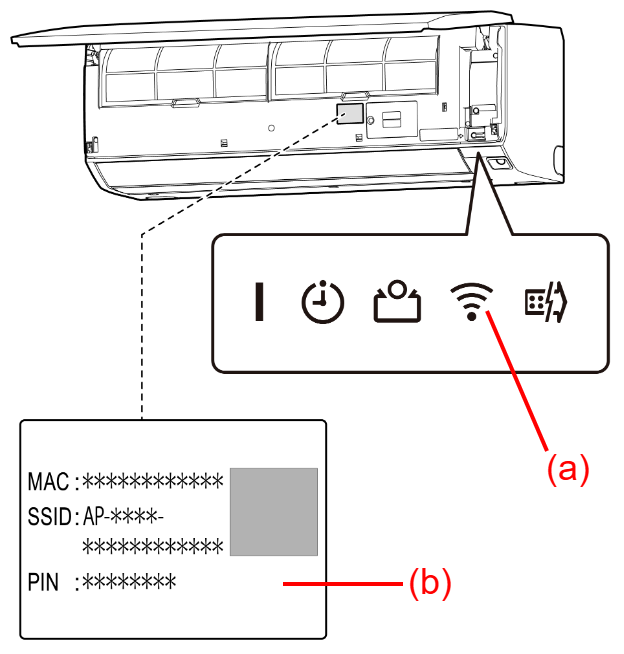 - อะแดปเตอร์ WLAN จะเข้าสู่โหมดสลีปเมื่อการตั้งค่า LAN ไร้สายไม่เสร็จสมบูรณ์ภายในหนึ่งชั่วโมงหลังจากที่เชื่อมต่อแหล่งจ่ายไฟเข้ากับเครื่องปรับอากาศ (ผ่านเบรกเกอร์หรือปลั๊ก)