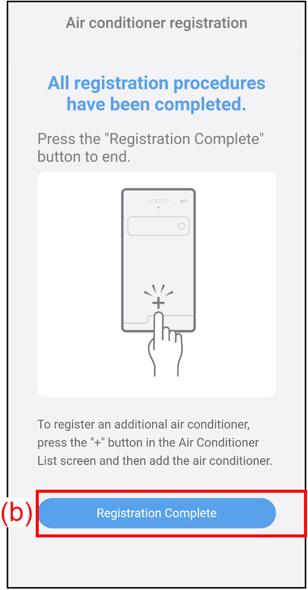 - แตะ (a) เพื่อเริ่มลงทะเบียนเครื่องปรับอากาศใหม่ในแอพนี้