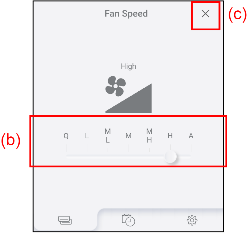 เลื่อนแถบ (b) เพื่อปรับความเร็วพัดลม