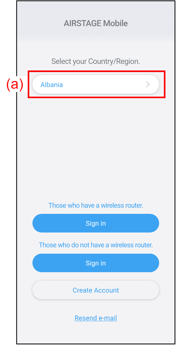 - หากคุณไม่มีบัญชี AIRSTAGE Mobile ให้สร้างบัญชีใหม่ตาม “การสร้างบัญชี”