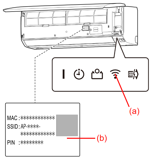 - อะแดปเตอร์ WLAN จะเข้าสู่โหมดสลีปเมื่อการตั้งค่า LAN ไร้สายไม่เสร็จสมบูรณ์ภายในหนึ่งชั่วโมงหลังจากที่เชื่อมต่อแหล่งจ่ายไฟเข้ากับเครื่องปรับอากาศ (ผ่านเบรกเกอร์หรือปลั๊ก)
