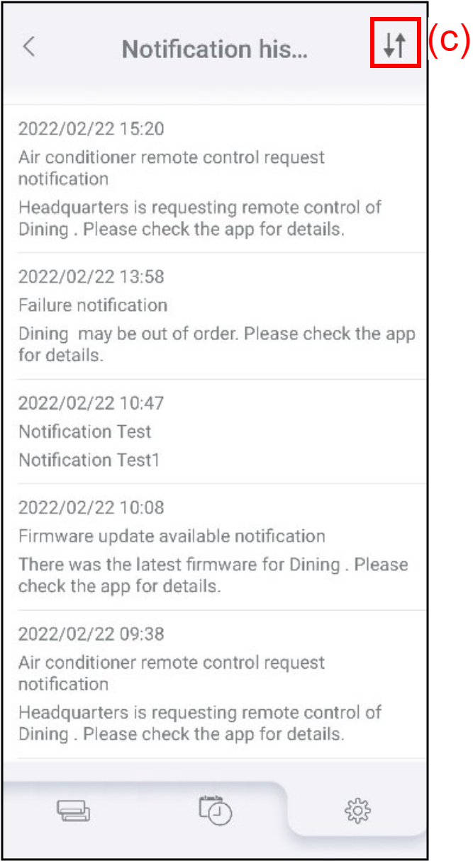 ประวัติการแจ้งเตือนจะแสดงตามลำดับล่าสุดก่อน