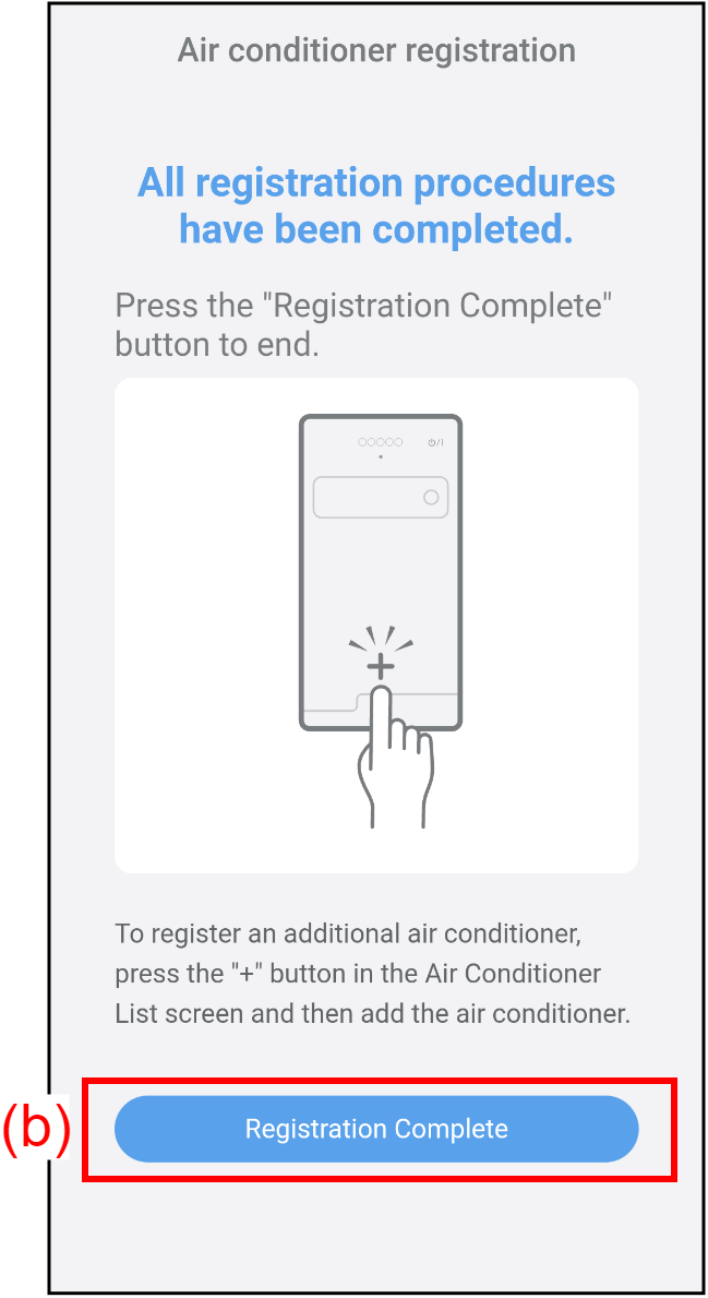 - แตะ (a) เพื่อเริ่มลงทะเบียนเครื่องปรับอากาศใหม่ในแอพนี้