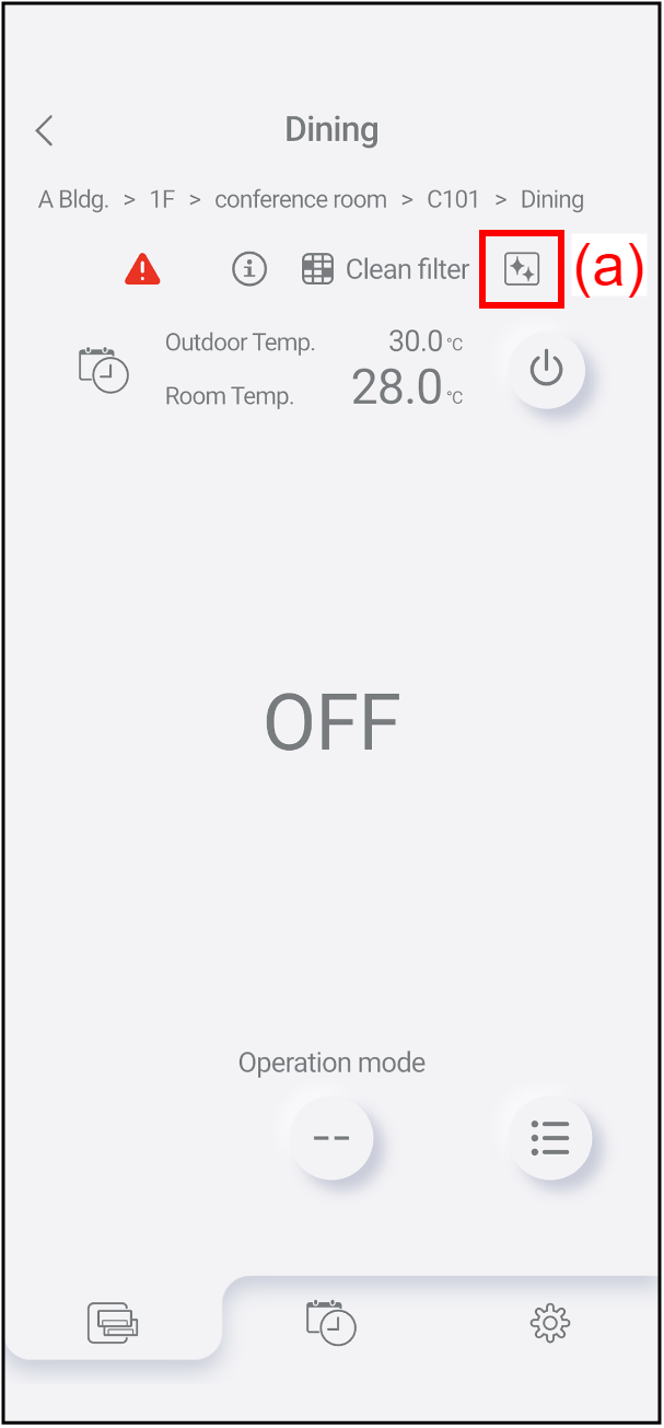 แตะไอคอน (a) เพื่อแสดงหน้าต่าง “การทำความสะอาดภายใน”
