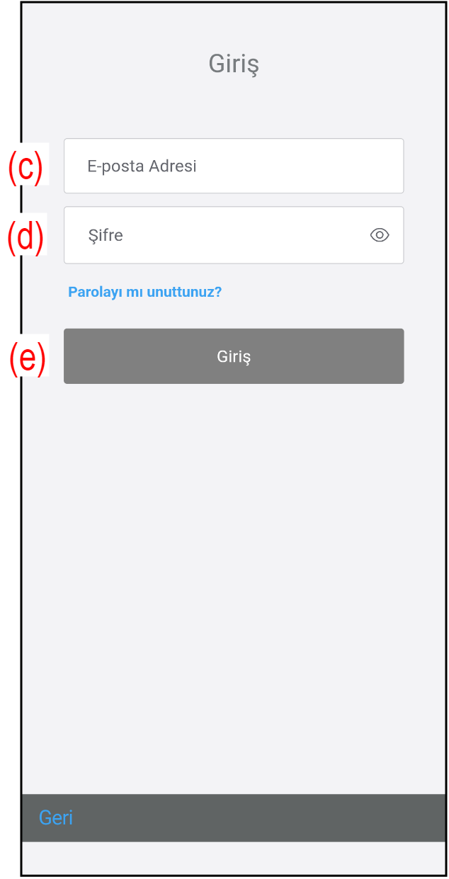 2. Kayıt olduğunuz e-posta adresi (c) ve şifre (d) ile giriş yapın.