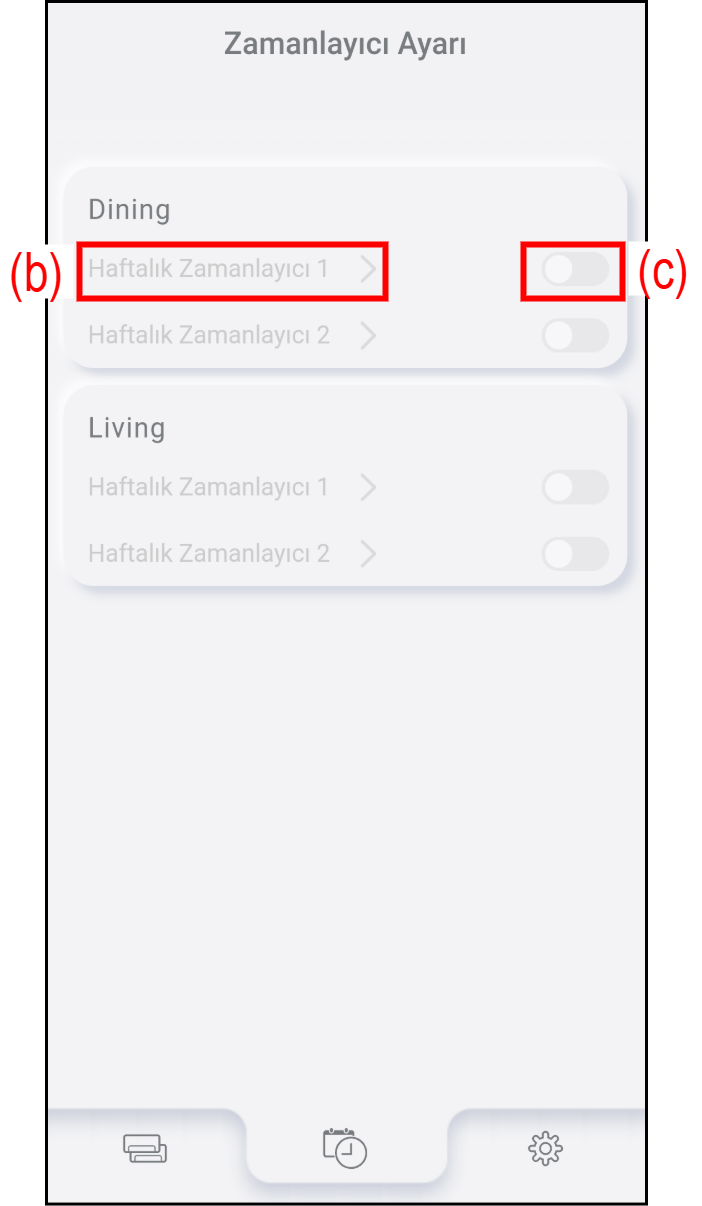 Haftalık zamanlayıcı ayarlarını kontrol etmek veya düzenlemek için (b) düğmesine basın. Ayrıntılar için bkz. "Zamanlayıcı ayarı prosedürü".