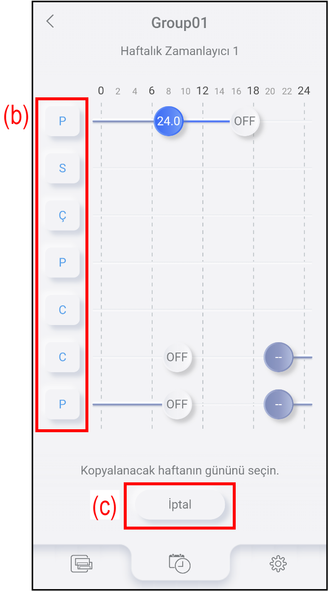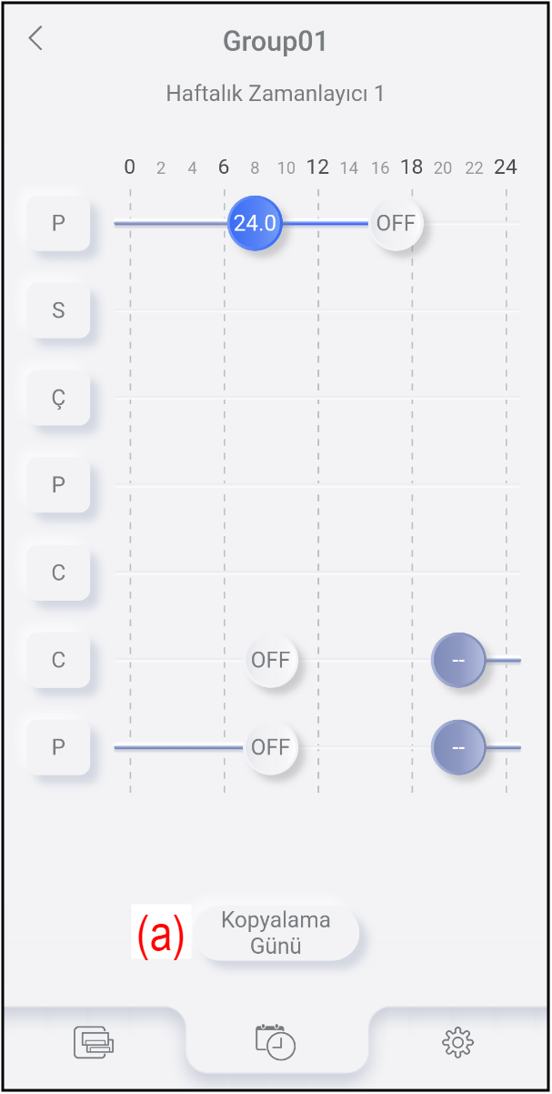 Haftanın bir gününe ait zamanlayıcı ayarlarını başka bir güne kopyalayabilirsiniz.