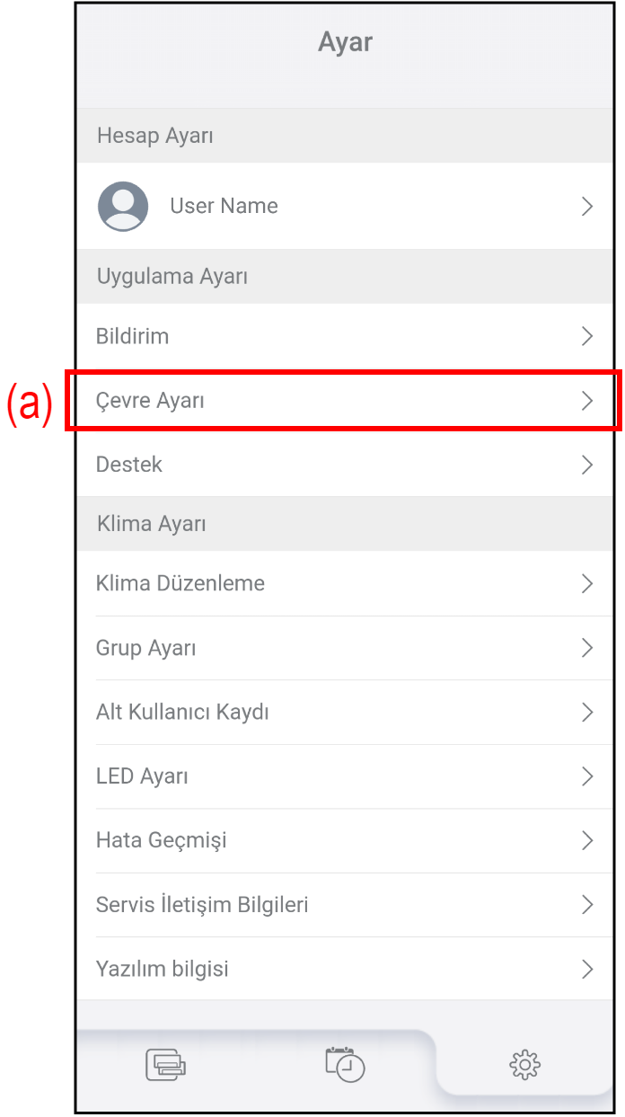 "Çevre Ayarı" ekranında aşağıdaki işlevleri kullanabilirsiniz:
