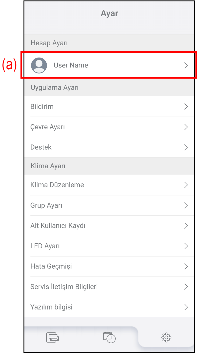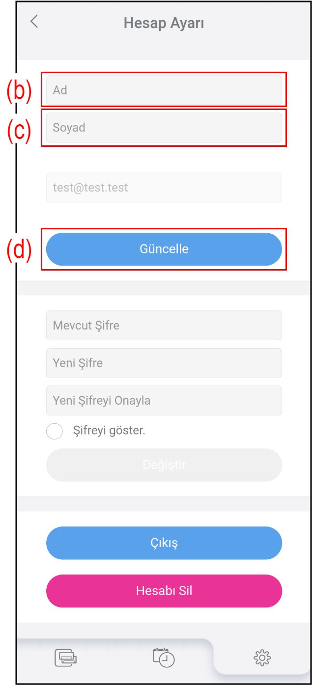 Hesap bilgilerinizi ve şifrenizi değiştirmek için "Ayar" ekranındaki (a) düğmesine basın.