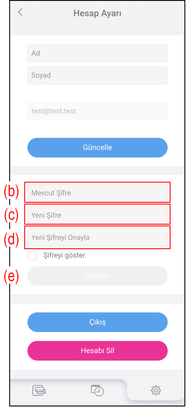 2. Yeni şifrenizi (c) ve (d) alanlarına girin.