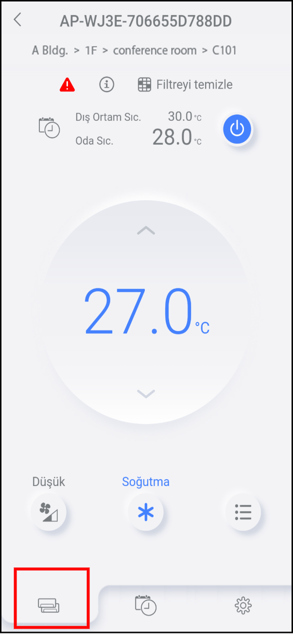 Klimaların temel işlevlerini klima sekmesinden ( [] veya [] ) kullanabilirsiniz.